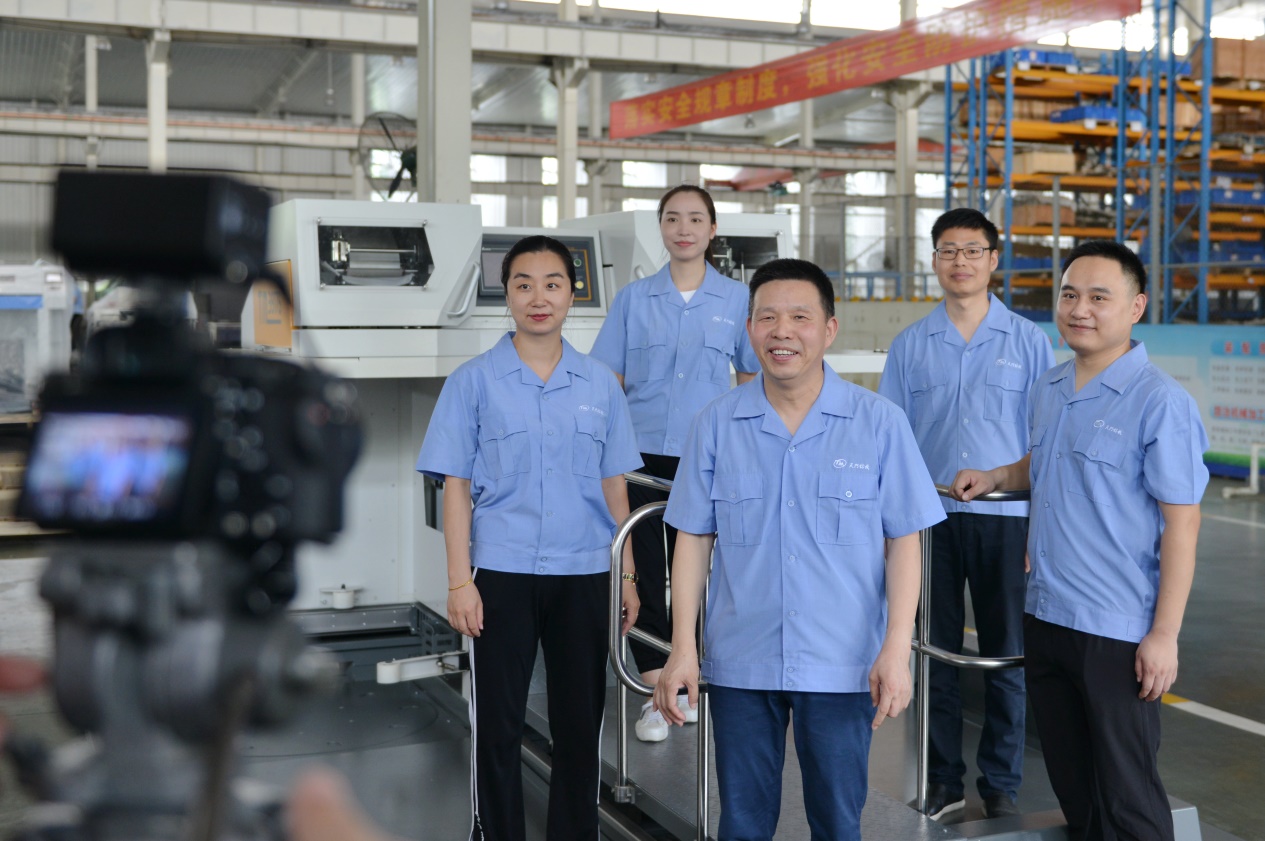 由中國(guó)互聯(lián)網(wǎng)發(fā)展基金會(huì)、中央廣播電視總臺(tái)央視網(wǎng)、天門市網(wǎng)信辦聯(lián)合制作的【《人民記憶 70年70城》記住天門】形象片于2019年8月7日上午在湖北天門紡織機(jī)械股份有限公司開機(jī)。公司董事長(zhǎng)沈方勇和部分員工代表在天門紡機(jī)生產(chǎn)現(xiàn)場(chǎng)配合攝制組完成了相關(guān)拍攝任務(wù),沈方勇在介紹企業(yè)時(shí)說:幾十年來,我和我的伙伴們致力于實(shí)體制造業(yè)的轉(zhuǎn)型升級(jí)和創(chuàng)新發(fā)展,心無(wú)旁騖抓技術(shù)改造、產(chǎn)品研發(fā)和企業(yè)管理,不斷提高市場(chǎng)競(jìng)爭(zhēng)力和行業(yè)地位,把天門紡機(jī)從一家小型農(nóng)具廠發(fā)展成為支柱產(chǎn)業(yè)細(xì)分領(lǐng)域銷售隱形冠軍科技小巨人和全球知名并條機(jī)供應(yīng)商。在展望未來時(shí),沈方勇面對(duì)鏡頭表露出堅(jiān)毅豪邁之情:新中國(guó)成立70年,我們將扛起制造業(yè)引擎大旗,讓智能制造之歌在天門唱響!祝福祖國(guó)70華誕生日快樂!