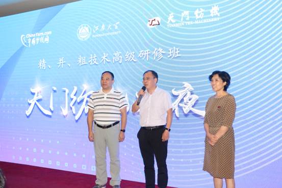 當天晚上,學員們參加了“天門紡機之夜”晚宴,中國紗線網(wǎng)總編王果剛、江南大學謝春萍教授、湖北天門紡織機械股份有限公司品控總監(jiān)樊早斌老師為晚宴致辭。