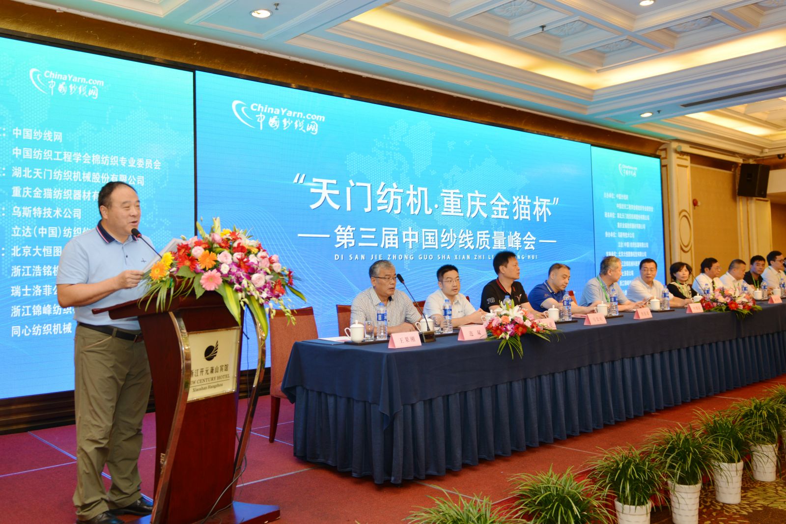 初秋的西子湖畔迎來了一場行業(yè)盛會。9月19日上午,“天門紡機•重慶金貓杯”第三屆中國紗線質(zhì)量峰會在浙江蕭山開元賓館舉行,來自全國21個省市近200家企業(yè)的500余位代表參加了會議。