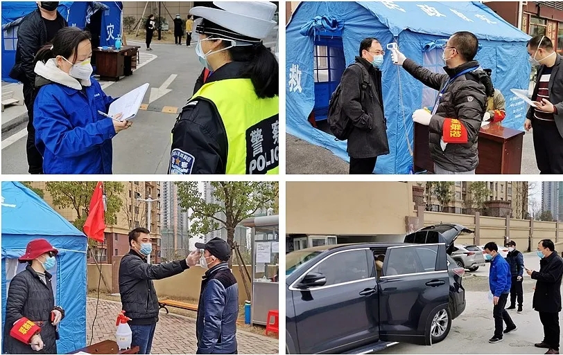 公司在大門設(shè)置了防控崗,對進(jìn)出人員做好消毒、體溫測量記錄等防護(hù)措施