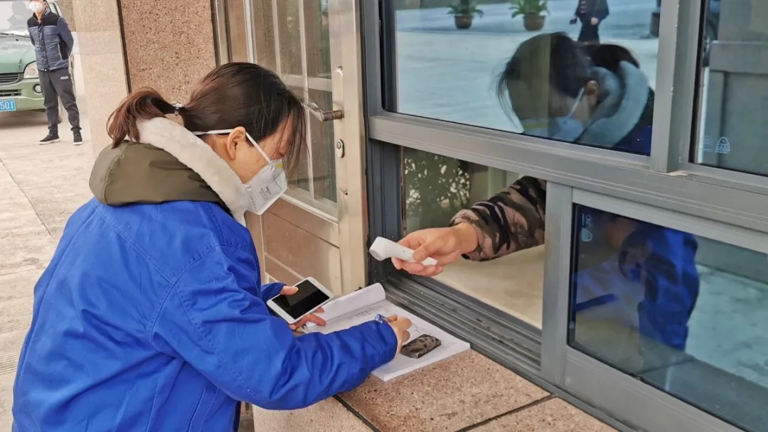 經(jīng)過防控人員一系列的查看通行證、反復(fù)核對名單,測量體溫登記后,王克文終于將參加發(fā)貨的員工接到公司