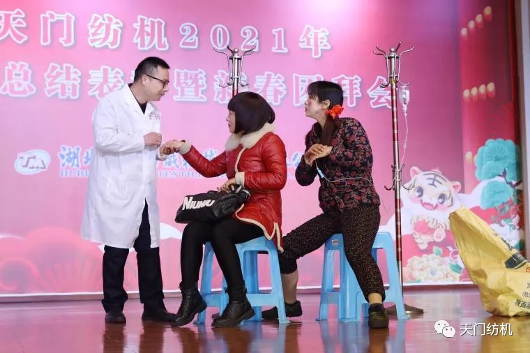 打起三棒鼓,敢為天下先。加工車間表演的三句半——《天門紡機攢》,詼諧幽默,充滿了濃郁的鄉(xiāng)土氛圍,年味十足,喜慶熱鬧。