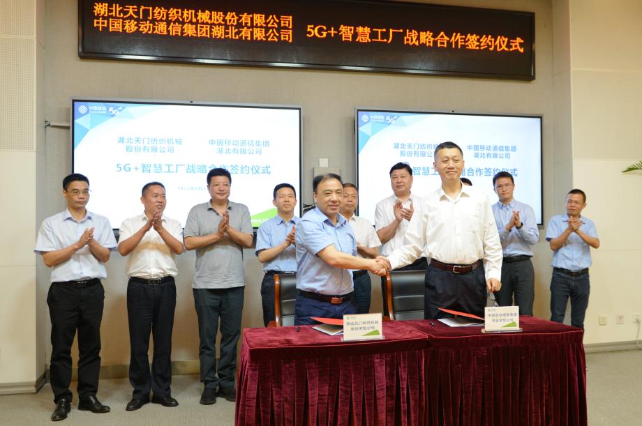 熱烈的掌聲中,天門紡機總經(jīng)理焦倫進與湖北移動副總經(jīng)理劉焱宇在“5G+智慧工廠”戰(zhàn)略合作框架協(xié)議書上簽字,為一個宏偉工程、一份殷切期望寫下開啟日期。