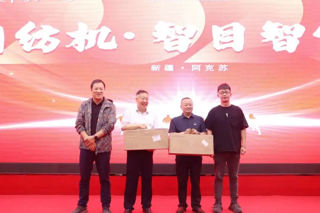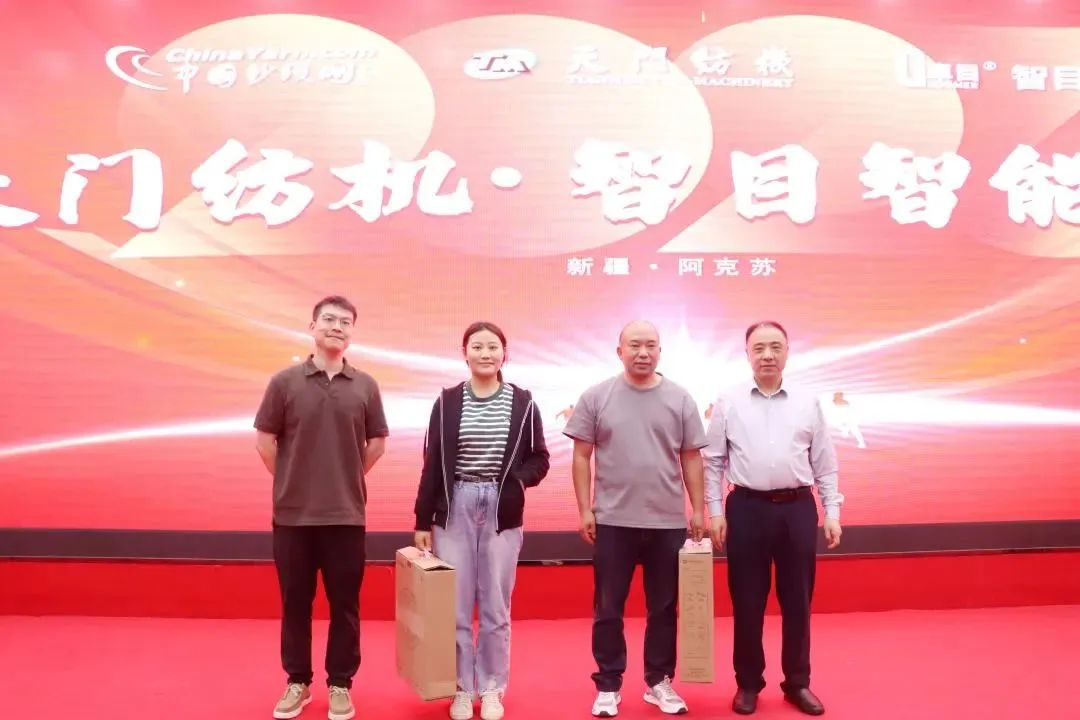天門(mén)紡機(jī)新疆辦事處主任趙凱抽取一等獎(jiǎng)并頒獎(jiǎng)合影