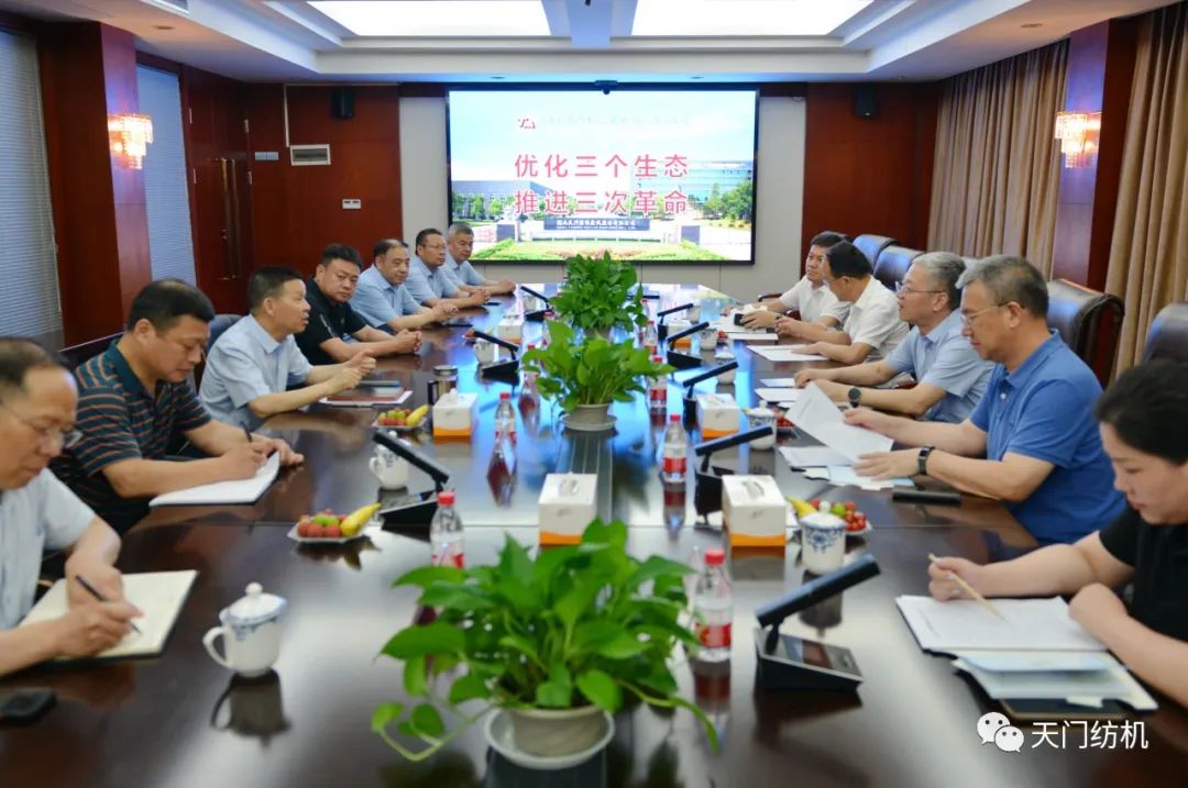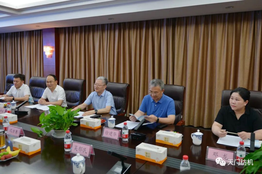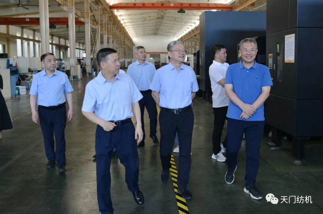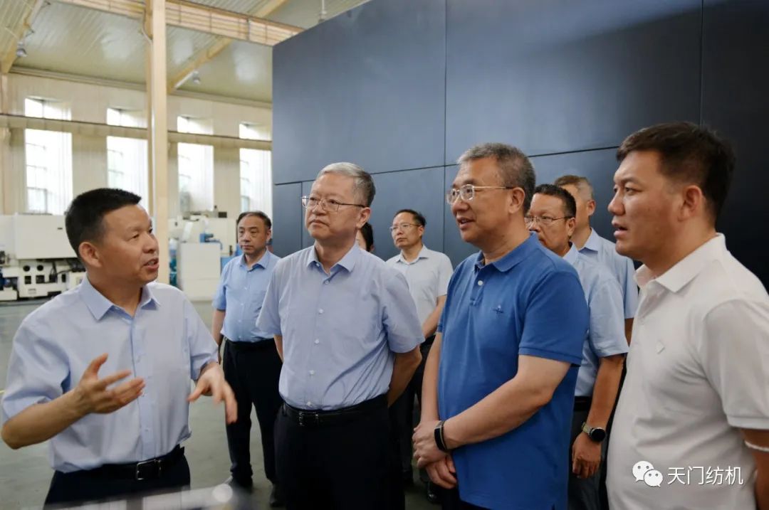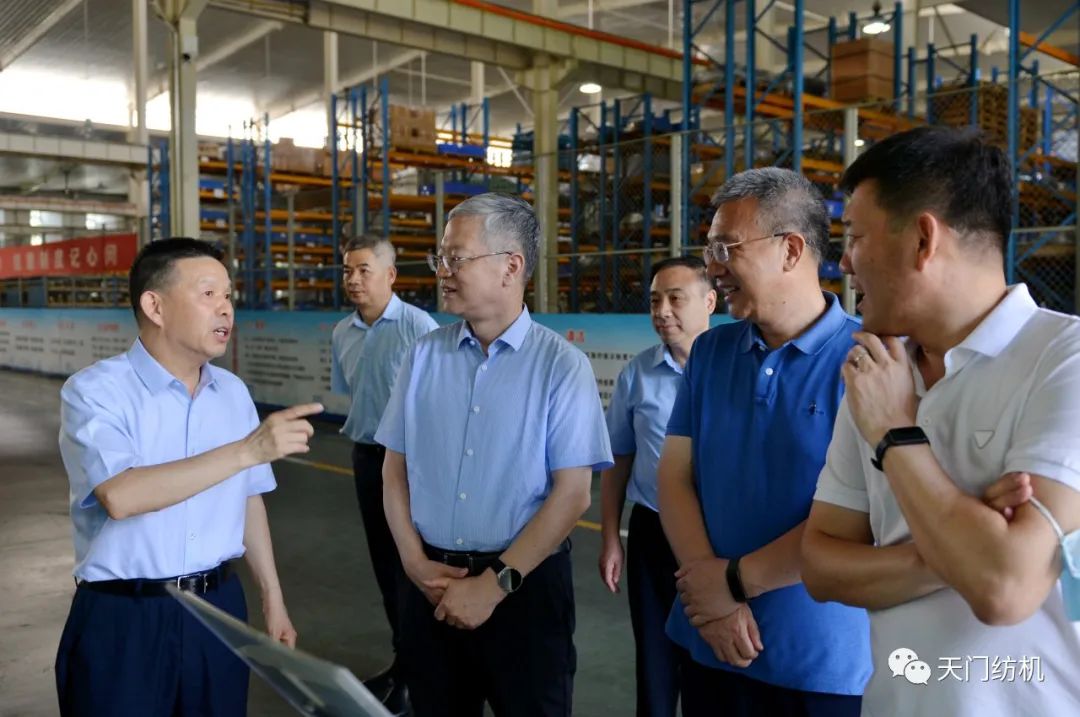 2023年6月27日下午,中國(guó)紡織工業(yè)聯(lián)合會(huì)秘書長(zhǎng)夏令敏,中國(guó)紡織工業(yè)聯(lián)合會(huì)流通分會(huì)副會(huì)長(zhǎng)徐建華、秘書長(zhǎng)王水元蒞臨天門紡機(jī)調(diào)研,湖北省經(jīng)信廳副廳長(zhǎng)周開斌、消費(fèi)品工業(yè)處副處長(zhǎng)鄧龍陪同調(diào)研。