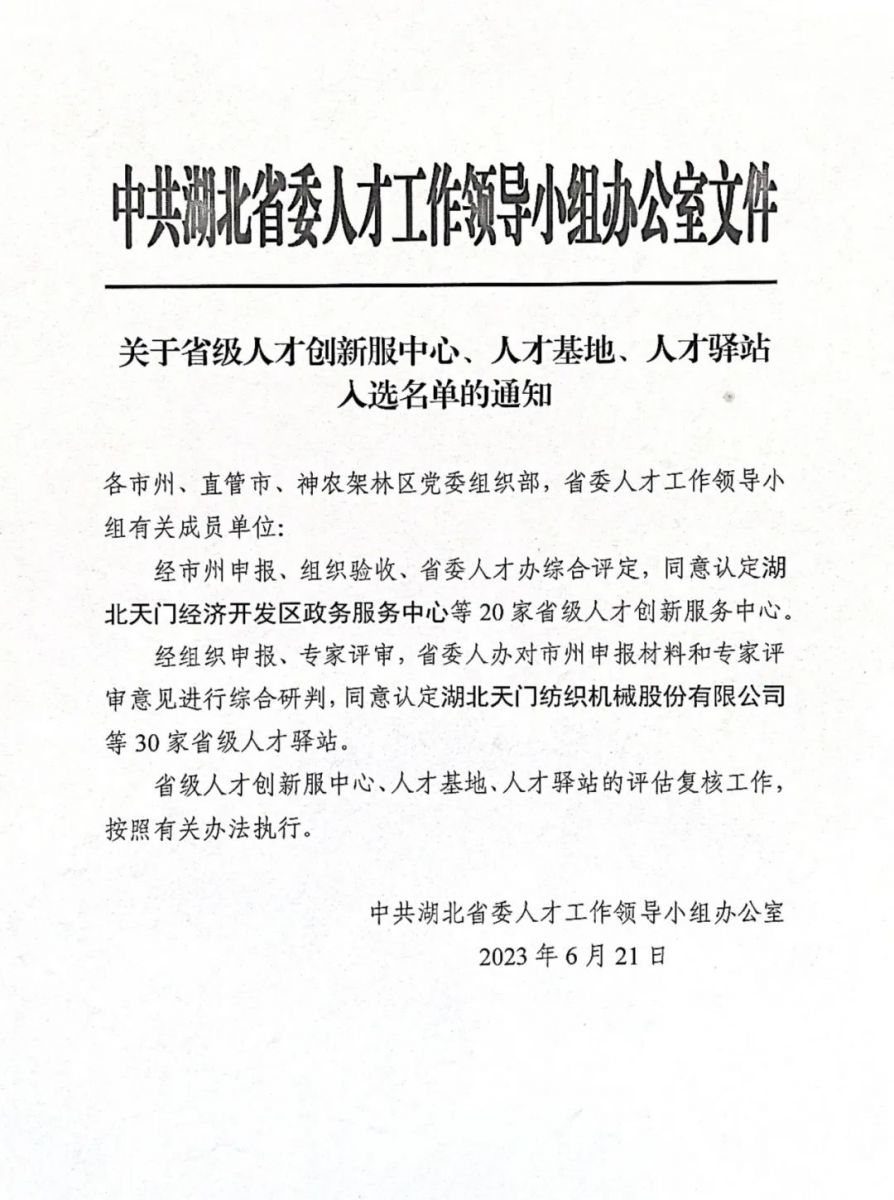 近日,以“英才聚楚 引領(lǐng)先行”為主題的湖北人才周活動在武漢東湖高新區(qū)啟動。活動由省委組織部(省委人才辦)和省委人才工作領(lǐng)導(dǎo)小組成員單位聯(lián)合主辦,啟動儀式上,公布了全省首批獲評認定的人才創(chuàng)新服務(wù)中心、人才基地、人才驛站、院士工作站、卓越工程師實踐基地等,并在現(xiàn)場正式授牌。本公司成功入列湖北省首批“人才驛站”名錄,榮獲湖北省人才驛站牌匾。