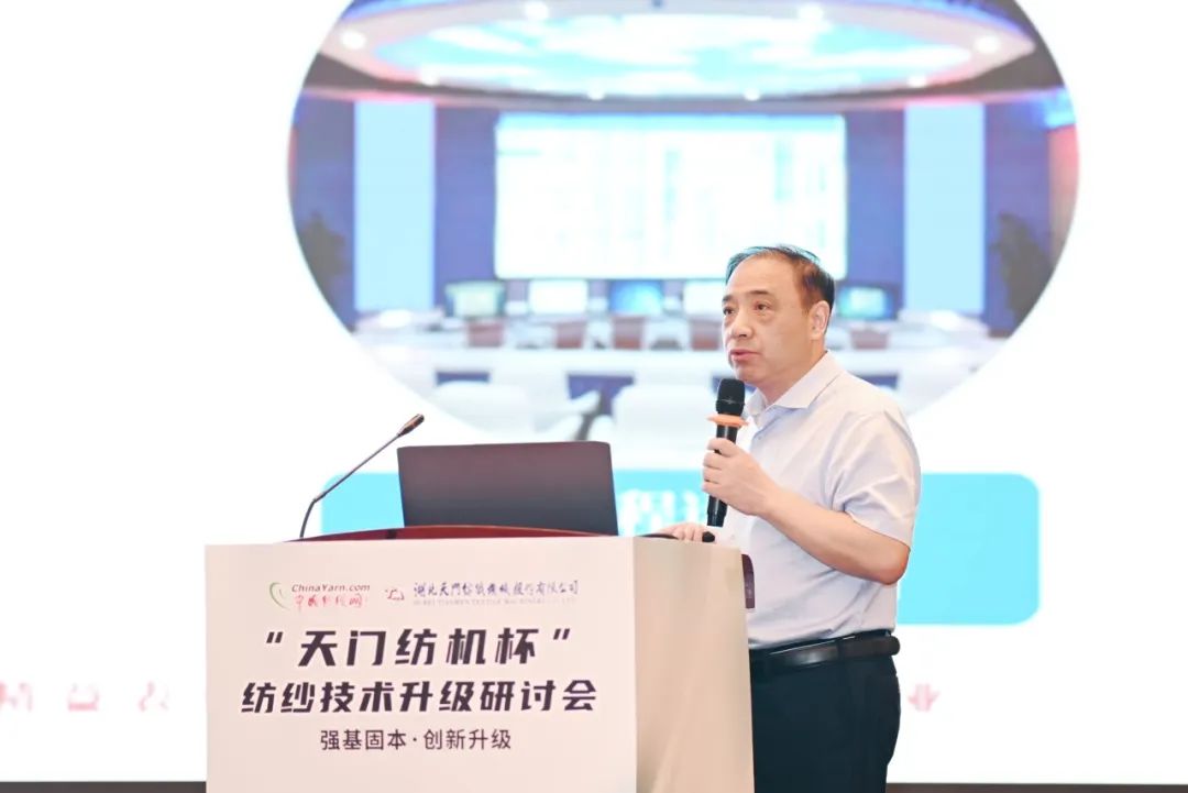 天門紡機(jī)總經(jīng)理焦倫進(jìn)向蒞臨會議的領(lǐng)導(dǎo)、嘉賓及長期關(guān)心支持天門紡機(jī)發(fā)展的各界同仁朋友表達(dá)了誠摯的謝意,他表示,天門紡機(jī)“生產(chǎn)制造柔性化、倉儲物流自動化、信息管理現(xiàn)代化”的5G+智慧工廠項(xiàng)目正在不斷向前推進(jìn),我們將通過自身的數(shù)字化轉(zhuǎn)型與智能化改造,為紡織企業(yè)數(shù)字化轉(zhuǎn)型和智能化改造持續(xù)提供裝備基礎(chǔ)。并作了題為《并條機(jī)的創(chuàng)新與應(yīng)用助力紡企高質(zhì)量發(fā)展》的專題報(bào)告。他交流了天門紡機(jī)堅(jiān)定不移走“專精特新”之路的工作經(jīng)驗(yàn),分享了勻整控制、在線監(jiān)控、5G+物聯(lián)網(wǎng)、自動熱交換降溫系統(tǒng)等技術(shù)創(chuàng)新成果。