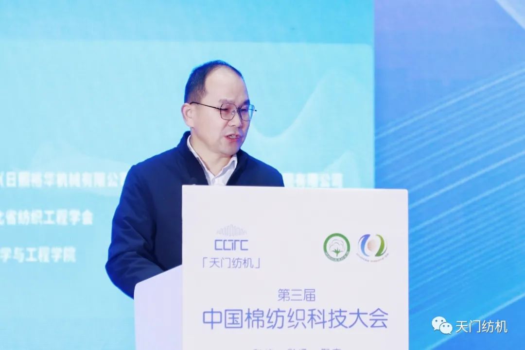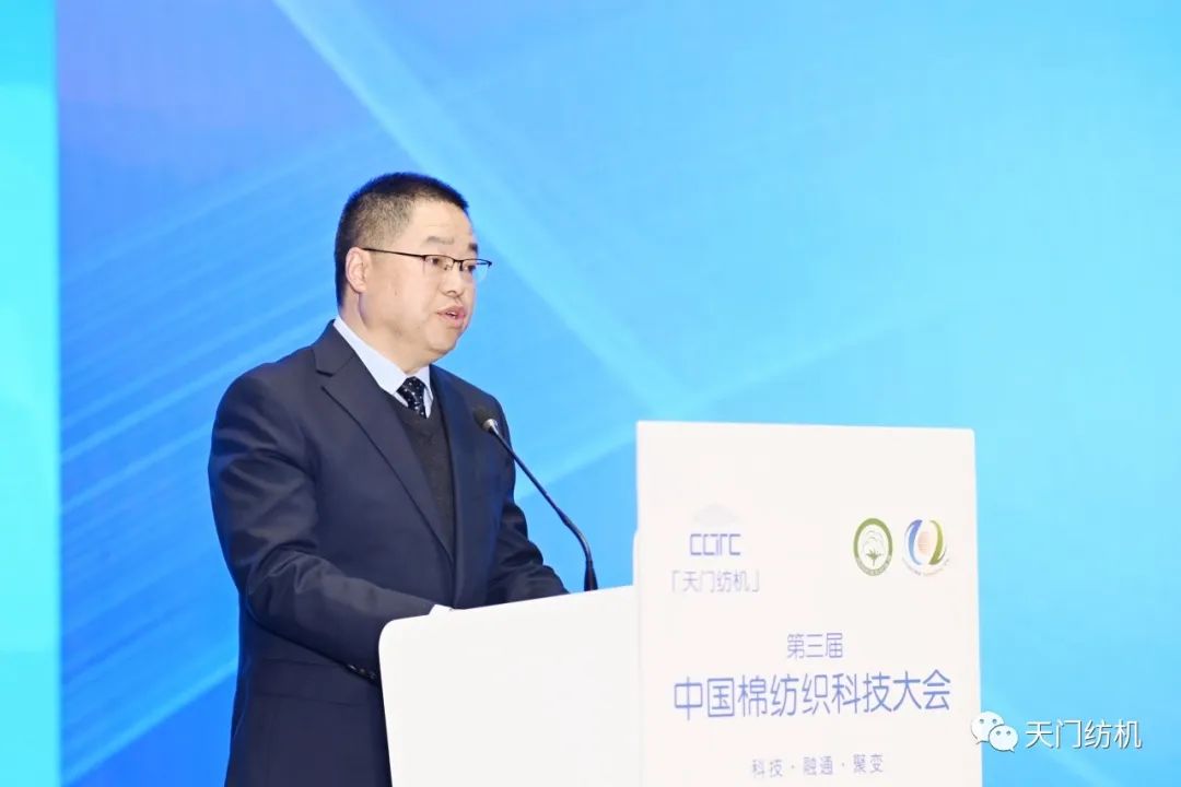 12月12日上午,中國棉紡織行業(yè)協(xié)會(huì)副會(huì)長景慎全主持開幕式,中國棉紡織行業(yè)協(xié)會(huì)會(huì)長董奎勇、湖北省經(jīng)濟(jì)和信息化廳副廳長周開斌、全國棉紡織科技信息中心主任/《棉紡織技術(shù)》期刊社社長王楊俊、天門紡機(jī)總經(jīng)理焦倫進(jìn)分別為大會(huì)致辭。