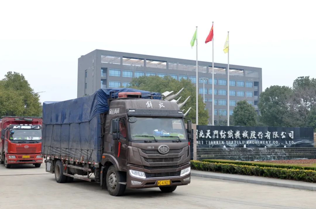 1月30日,天門紡機各生產車間內熱火朝天,智能生產線已火力全開,工人們在緊張有序地工作,裝配現(xiàn)場叉車穿梭,主干道上等待裝車的貨車排成長龍。這是天門紡機保障用戶實現(xiàn)開門紅的喜人場景。