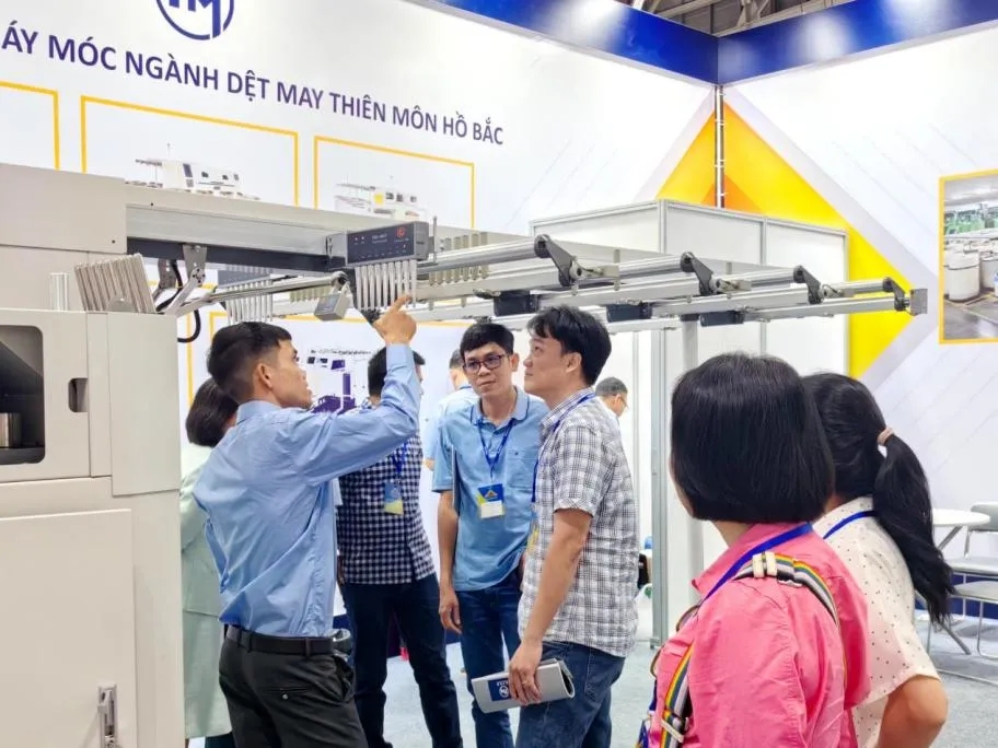 展會(huì)期間,越南PHU BAI、BROCSTEX、TPP TEXTILE、PHONG PHU、VICOTEX等多家紡織企業(yè)蒞臨天門紡機(jī)展位進(jìn)行參觀交流,對(duì)天門并條機(jī)贊許有嘉,評(píng)價(jià)其出條成形好,效率高,且性能穩(wěn)定,節(jié)能降耗。前期的一些用戶也來(lái)到現(xiàn)場(chǎng)考察,商討繼續(xù)合作的意向。