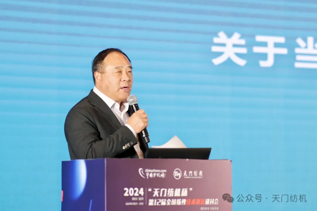 公司焦倫進總經(jīng)理介紹了天門紡機產品開發(fā)情況,剖析了行業(yè)形勢和企業(yè)面臨的機遇與挑戰(zhàn)。他說,天門紡機作為并條機的專業(yè)生產廠家,不斷加大研發(fā)投入,專注于技術創(chuàng)新和產品研發(fā),不斷探索新技術,成功研發(fā)并推向市場的TM11、TM13、TM15、TM17系列并條機已成為行業(yè)主力產品。公司倡導“并條工序全自調勻整”的理念后,推出了TM19大圈裝高速自調勻整并條機,并已在多家國內知名紡織企業(yè)推廣應用,效果十分明顯。在2023年11月舉行的上海國際紡機展覽會上,公司推出的TM25、TM27、TM29、TM35等四款并條機,因擁有智能在線檢測、一控多軸多臺、數(shù)據(jù)管理云平臺等技術,引起了業(yè)界廣泛關注,得到了高度評價;他強調,2024年,紡織行業(yè)仍將處于產業(yè)恢復期,市場逐漸回暖。同時,紡織行業(yè)正處在朝高端化、智能化、綠色化發(fā)展的轉型升級關鍵期,市場潛力大,積極向好的發(fā)展趨勢逐步顯現(xiàn)。因此,2024年將是機遇與挑戰(zhàn)并存、困難與希望同在的一年。只要我們保持定力,加強交流合作,群策群力,不斷推進數(shù)字化轉型和智能化改造,加快發(fā)展新質生產力,就一定能開創(chuàng)更加美好的未來。