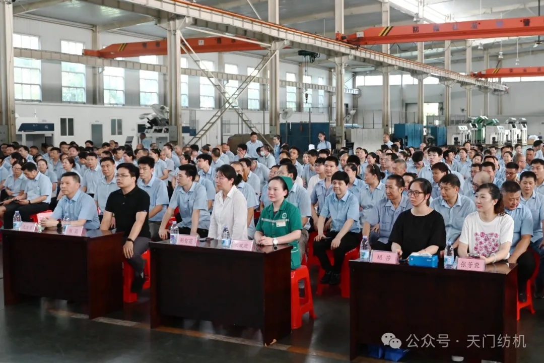 室外赤日炎炎,酷暑難當(dāng);室內(nèi)座無(wú)虛席,氣氛熱烈。2024年7月17日下午,天門紡機(jī)在生產(chǎn)現(xiàn)場(chǎng)組織了一場(chǎng)別開生面的健康知識(shí)及急救技能培訓(xùn)活動(dòng),天門市第一人民醫(yī)院的多位醫(yī)療專家應(yīng)邀來(lái)公司進(jìn)行健康知識(shí)講座和急救實(shí)操演示。