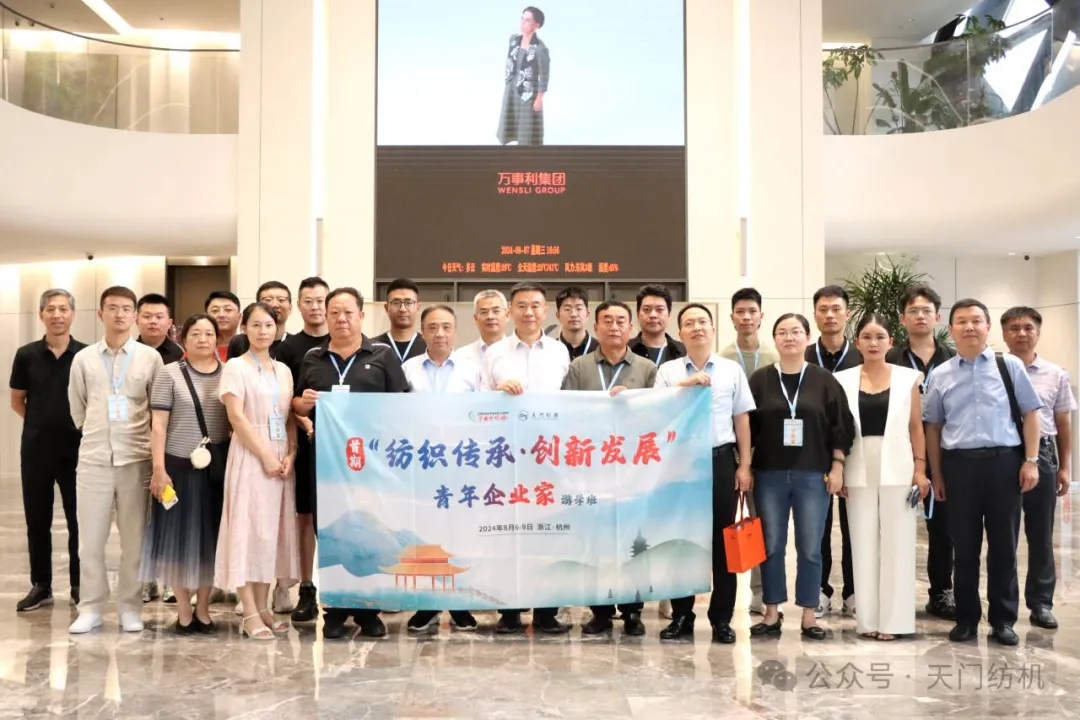 2024年8月6-9日,天門(mén)紡機(jī)聯(lián)袂中國(guó)紗線網(wǎng)舉辦了首期“紡織傳承·創(chuàng)新發(fā)展”杭州游學(xué)班,為一批紡織企業(yè)傳承人-青年企業(yè)家搭建學(xué)習(xí)交流平臺(tái),共謀未來(lái)。