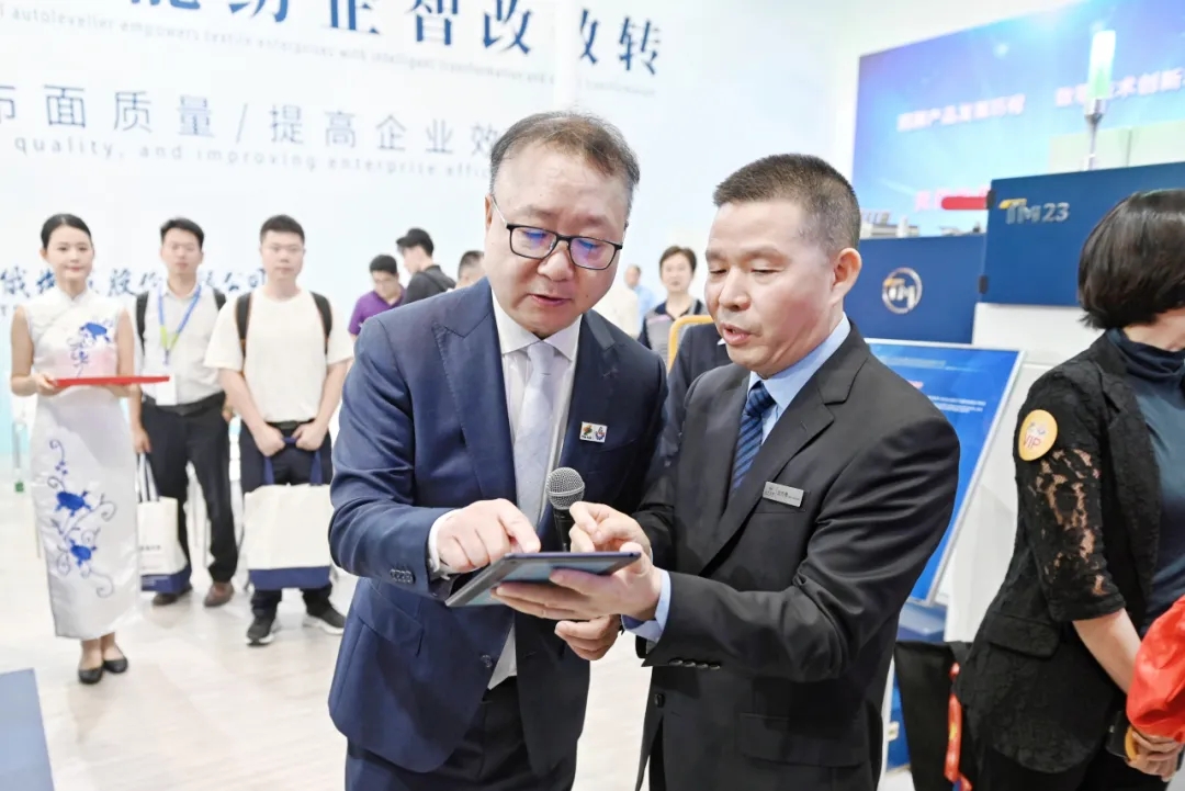 天門(mén)紡機(jī)董事長(zhǎng)沈方勇作了熱情洋溢的致辭。他回顧企業(yè)發(fā)展歷程時(shí)說(shuō),產(chǎn)品是企業(yè)生存之本,創(chuàng)新是企業(yè)發(fā)展之魂。天門(mén)紡機(jī)自上世紀(jì) 80 年代初進(jìn)入紡機(jī)行業(yè),始終堅(jiān)持把產(chǎn)品開(kāi)發(fā)作為企業(yè)生存與發(fā)展第一要?jiǎng)?wù)。公司幾十年深耕并條工序技術(shù)創(chuàng)新,走出了一條具有鮮明特色的企業(yè)發(fā)展之路。從并條速度的不斷提高,到條筒的不斷增大;從成組交換齒輪的開(kāi)發(fā),到電子牽伸的率先應(yīng)用;從自調(diào)勻整的成熟推廣,到產(chǎn)線全自調(diào)勻整概念的提出;從一控多軸產(chǎn)線聯(lián)動(dòng)技術(shù),到遠(yuǎn)程運(yùn)維實(shí)質(zhì)性運(yùn)用等,一代一代新技術(shù)研發(fā)、應(yīng)用與推廣,既促進(jìn)了行業(yè)的整體技術(shù)進(jìn)步,又帶來(lái)了企業(yè)生生不息的發(fā)展。他滿懷深情地講道,天門(mén)紡機(jī)之所以能夠不失時(shí)機(jī)地實(shí)現(xiàn)產(chǎn)品更新迭代,得益于無(wú)數(shù)紡織專家、工程技術(shù)人員和一線員工的默默奉獻(xiàn)與辛勤付出,得益于一大批上下游企業(yè)的積極配合與協(xié)同創(chuàng)新。他們是推動(dòng)并條技術(shù)不斷進(jìn)步的功臣,是推動(dòng)行業(yè)智改數(shù)轉(zhuǎn)和高質(zhì)量發(fā)展的功臣。