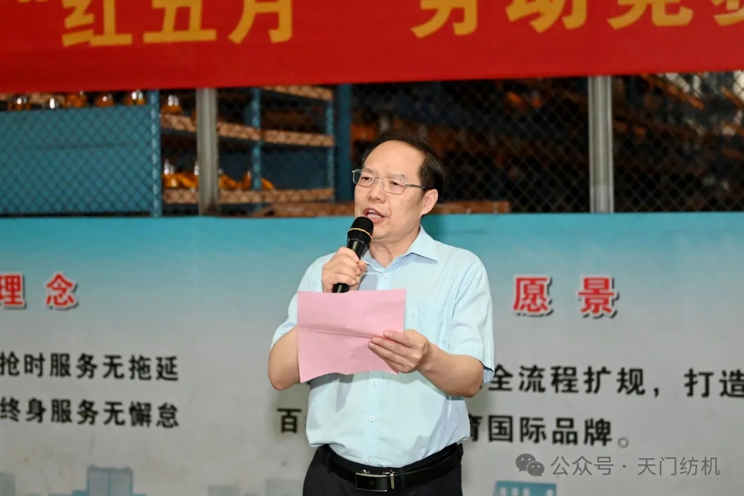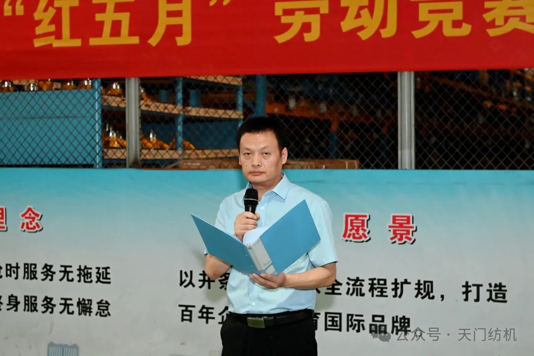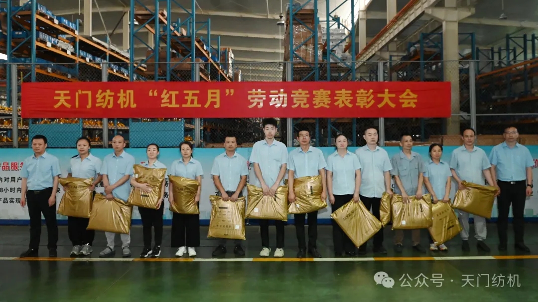 晨光微熹,映照勞動者的身影。2025年6月27日早上8:00,天門紡機全體員工齊聚總裝配區(qū),舉行“紅五月”勞動競賽表彰大會,禮贊拼搏者,致敬奮斗人!