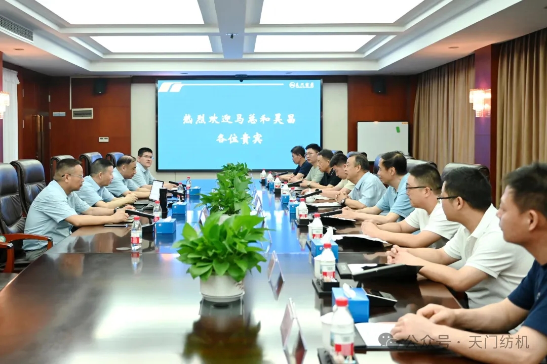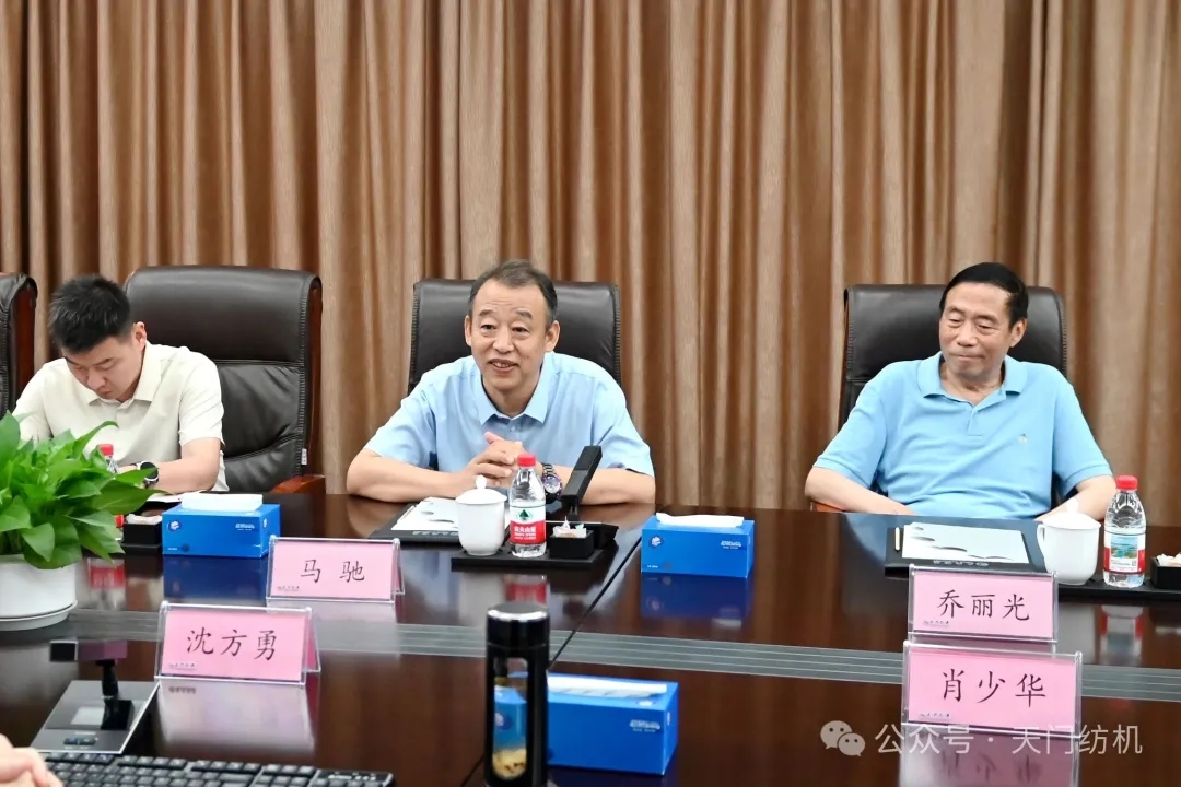 2025年6月30日上午,河南昊昌精梳機(jī)械股份有限公司董事長(zhǎng)馬馳率高管及中層干部一行9人蒞臨天門紡機(jī),傳經(jīng)送寶。公司董事長(zhǎng)沈方勇率隊(duì)熱情接待到訪客人,雙方圍繞企業(yè)發(fā)展進(jìn)行了深入交流。