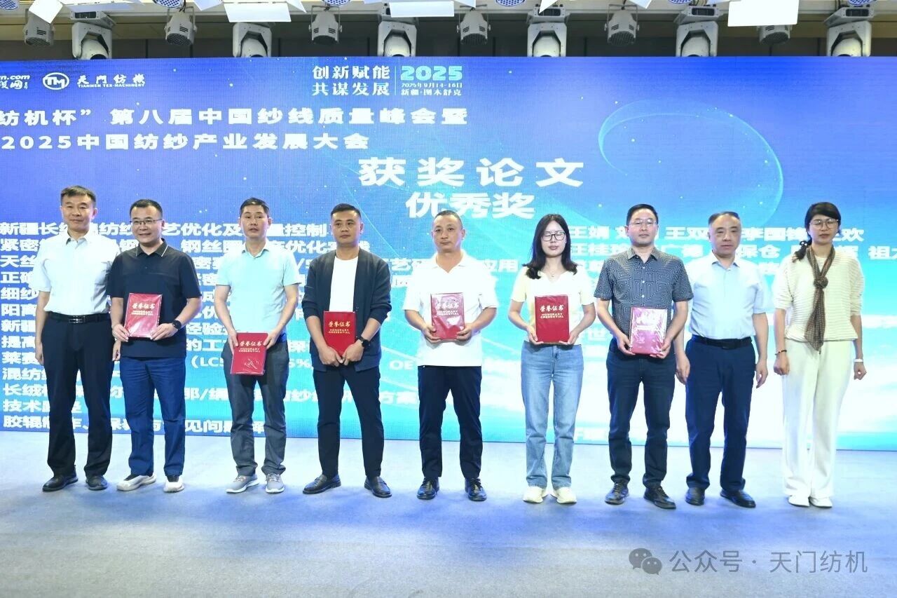 開幕式上,隆重舉行了“天門紡機(jī)杯”第八屆中國紗線質(zhì)量峰會(huì)獲獎(jiǎng)?wù)撐念C獎(jiǎng)活動(dòng),新疆維吾爾自治區(qū)紡織工程學(xué)會(huì)理事長、新疆大學(xué)紡織與服裝學(xué)院院長夏鑫,天門紡機(jī)總經(jīng)理焦倫進(jìn),中國紗線網(wǎng)總裁鞠彥軍為獲獎(jiǎng)作者頒發(fā)了證書和獎(jiǎng)金。