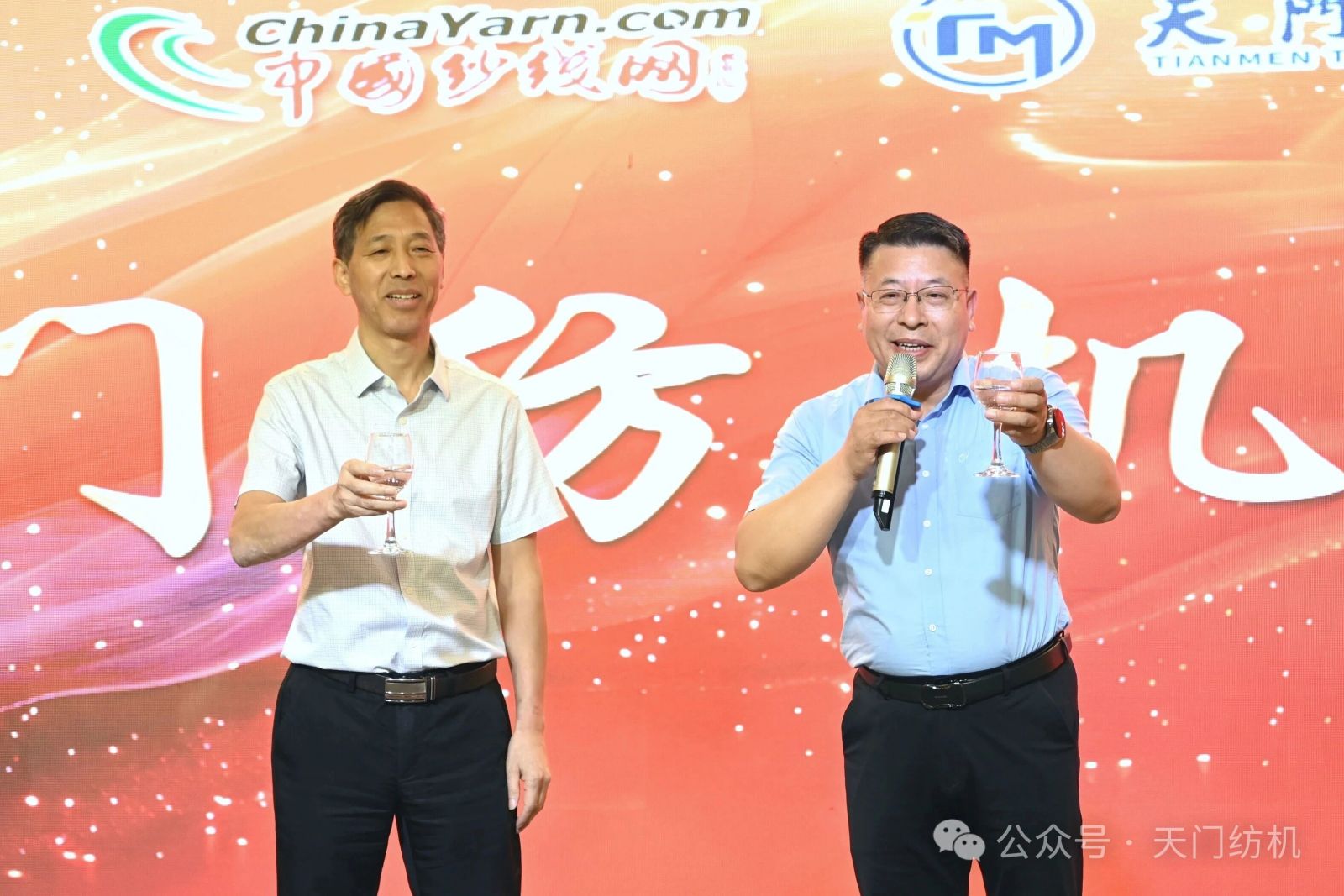 中國紗線網(wǎng)常務(wù)副總裁孫其海(左)、天門紡機(jī)市場總監(jiān)王繼文(右)為晚宴致辭