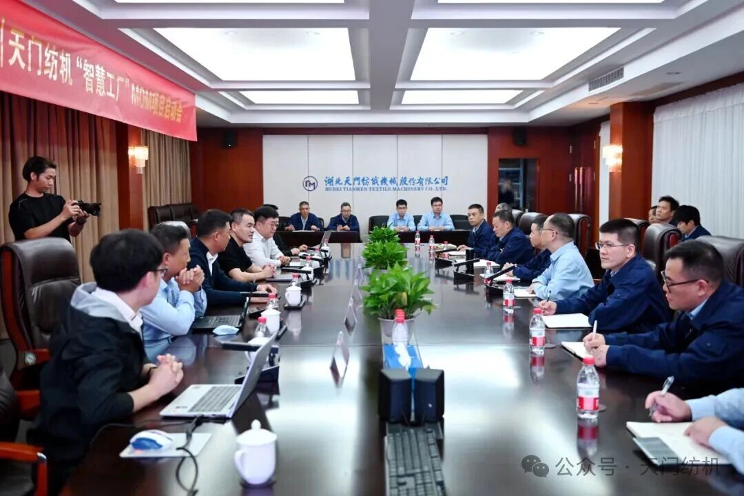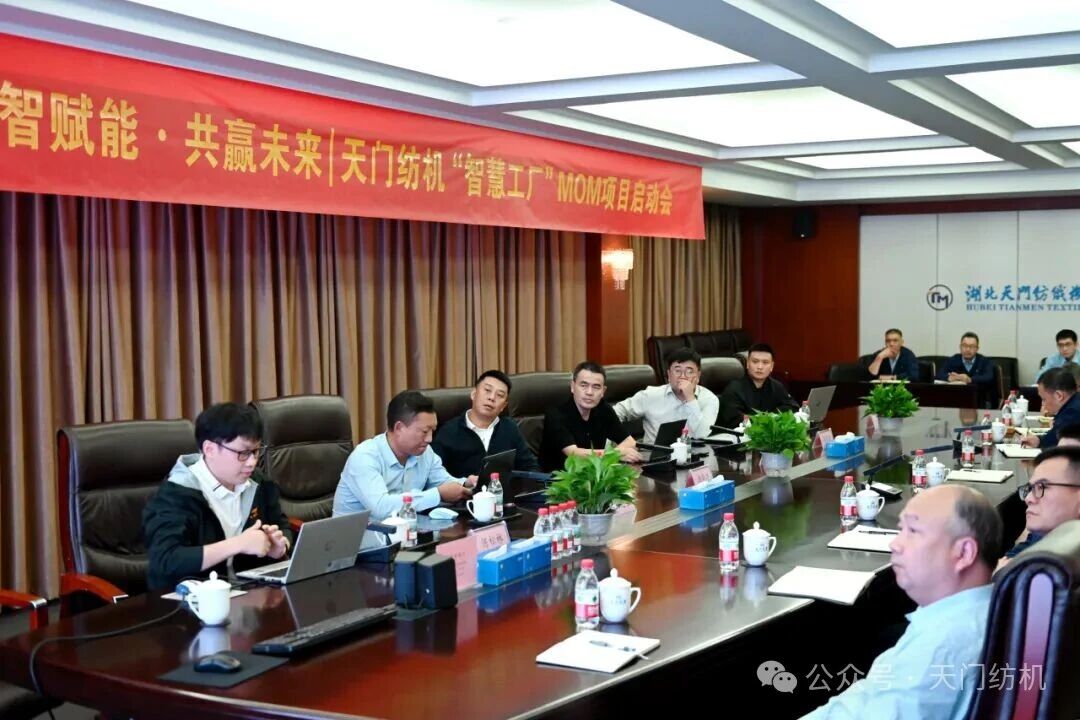 2025年10月15日下午,天門紡機在科技樓五樓會議室召開MOM系統(tǒng)項目啟動會。公司董事長沈方勇、項目合作方廣東盤古信息科技股份有限公司CTO劉鵬、副總經理游畢濤及項目相關負責人出席會議,公司副總經理胡進紅、鄧俊杰,有關部門、車間負責人和工作人員參加了會議。