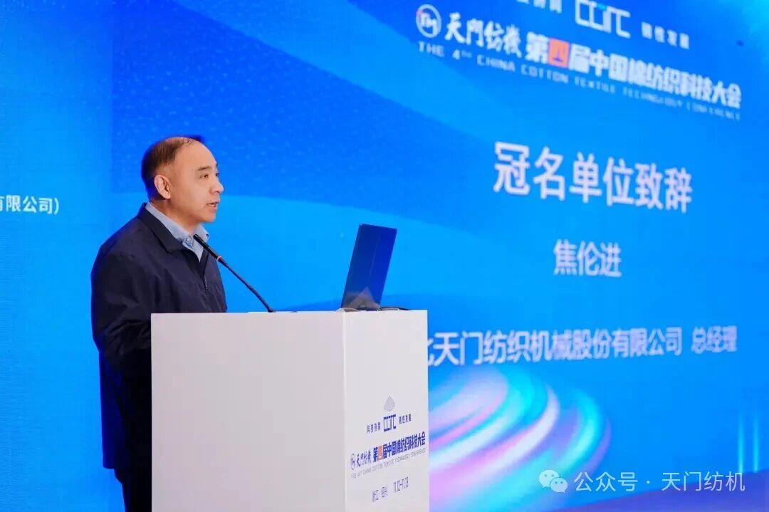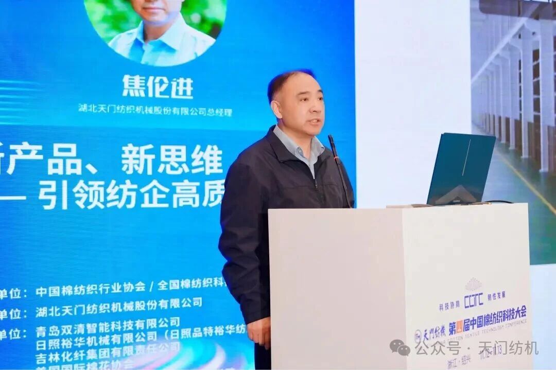 天門紡機(jī)總經(jīng)理焦倫進(jìn)代表冠名單位致辭。他表示,40余年來,天門紡機(jī)秉持“并條做精、企業(yè)做強(qiáng)”初心,深耕并條機(jī)領(lǐng)域,以優(yōu)質(zhì)產(chǎn)品、服務(wù)及品牌引領(lǐng)行業(yè)發(fā)展。其雙眼自調(diào)勻整并條機(jī)已在棉紡企業(yè)廣泛推廣應(yīng)用,顯著提升了紗線質(zhì)量與生產(chǎn)效率,成為紡紗企業(yè)必備裝備;“并條工序全自調(diào)勻整”理念亦獲得客戶認(rèn)可,有效改善紗線和布面質(zhì)量。在技術(shù)創(chuàng)新方面,天門紡機(jī)成果豐碩,TM1系列并條機(jī)已成紡織行業(yè)主力產(chǎn)品,T2系列產(chǎn)品正逐步推向市場,搭載智能在線檢測、一控多軸多臺(tái)及數(shù)據(jù)管理云平臺(tái)技術(shù)的“產(chǎn)線聯(lián)動(dòng)”并條機(jī)引起了業(yè)界廣泛關(guān)注。同時(shí),天門紡機(jī)全力推進(jìn)“智改數(shù)轉(zhuǎn)”,“智慧工廠”項(xiàng)目正在如火如荼地建設(shè)之中。他指出,天門紡機(jī)始終關(guān)注行業(yè)的最新動(dòng)態(tài)和前沿技術(shù),希望與業(yè)界加強(qiáng)溝通與合作,攜手發(fā)展。